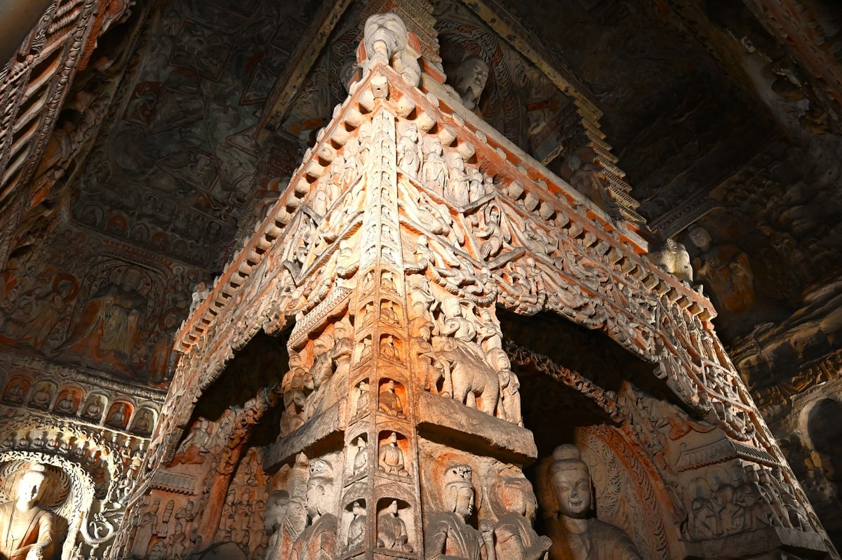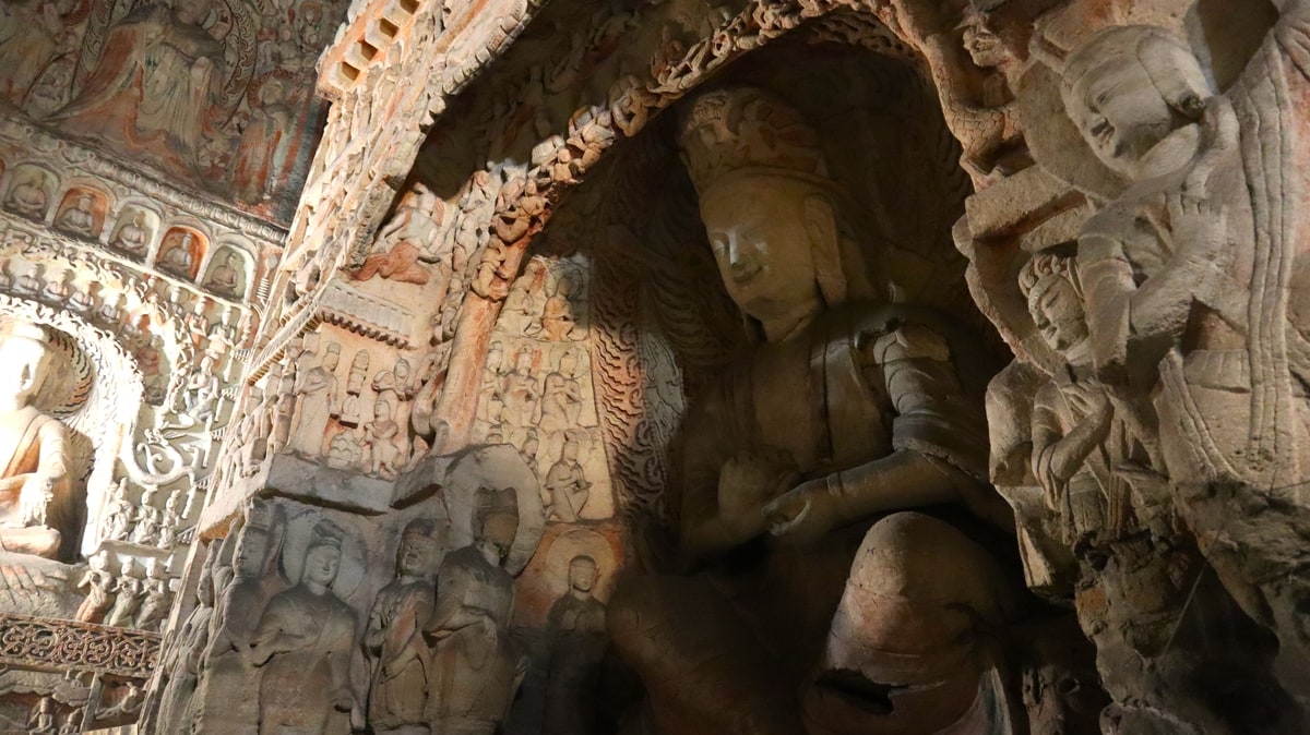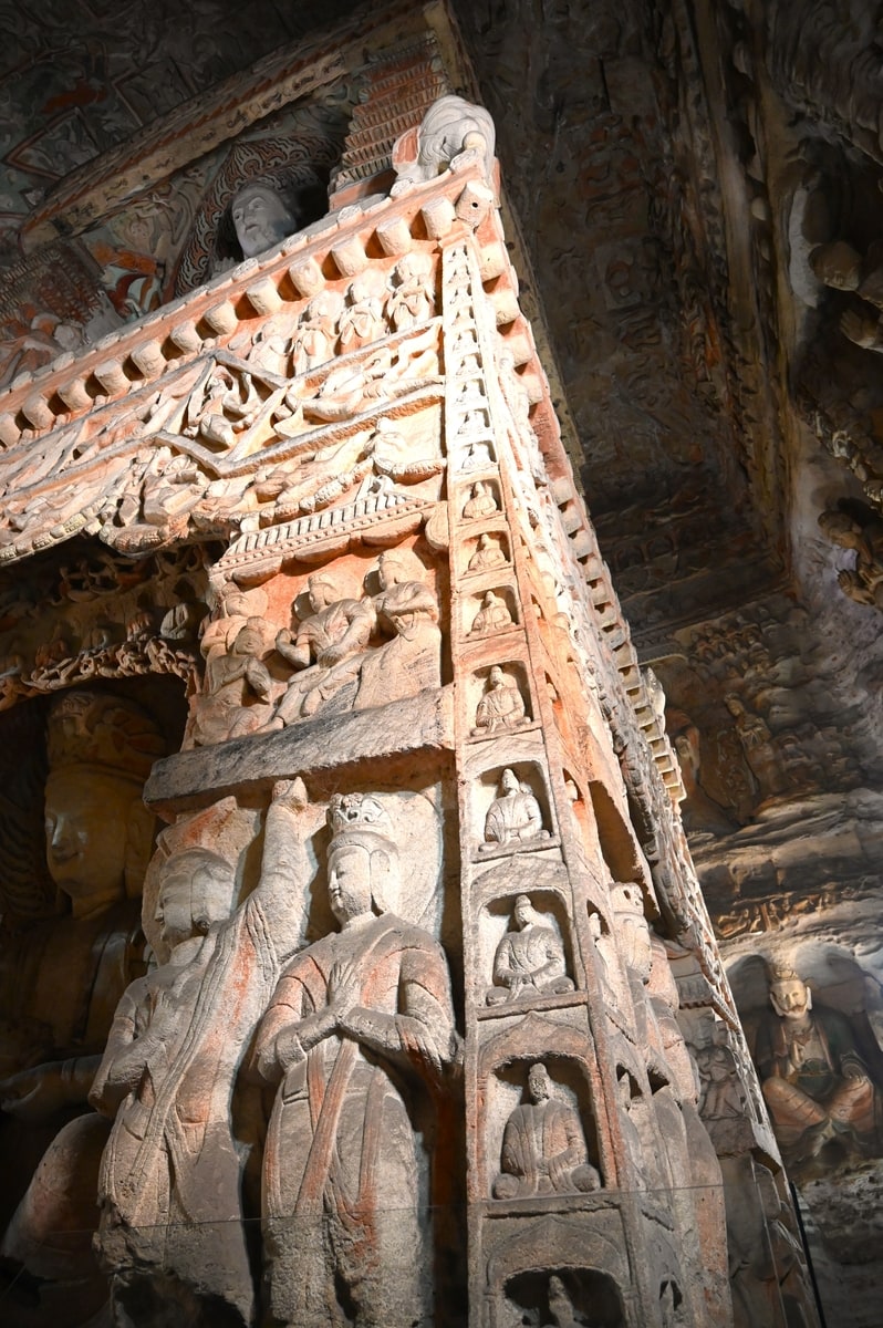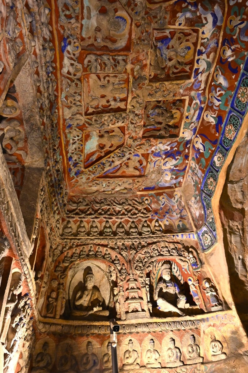 雲岡石窟が造営された北魏時代は日本では弥生時代が終わり古墳時代を迎える時代。耶馬大国の卑弥呼の時代から古墳時代へと向かった時代。その時代に洞窟一面にこのような華麗で繊細なたくさんの仏教彫刻が存在した。中国の悠久の偉大な歴史に思いを馳せながら洞窟を歩いていると、いっそう雲岡石窟のすばらしさに圧倒される。