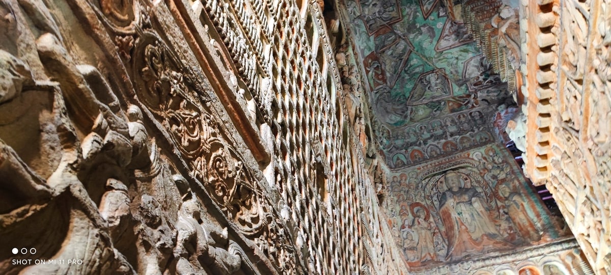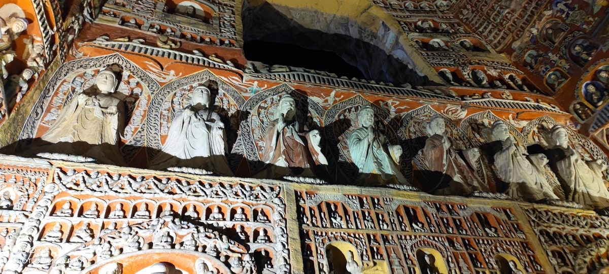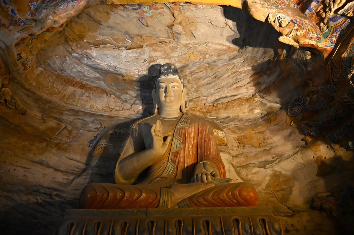 雲岡石窟の洞窟の柱はギリシャ風でもあり、描かれた紋様はペルシャ風でもあり、シルクロードの多様な文化を見ることもできる。しかし、雲岡石窟のすばらしさはインド、パキスタン、ペルシャと西方文化が融合したガンダーラ美術を取り入れながらも、東洋の優美さ、穏やかさ、やさしさに溢れていることだろう。阿弥陀仏、釈迦牟尼仏、弥勒菩薩など仏像の顔の表情、口元の微笑などに東洋的な穏やかさ、やさしさを見ることができる。まさにシルクロードのきらめく宝石のような存在が雲岡石窟だろう。