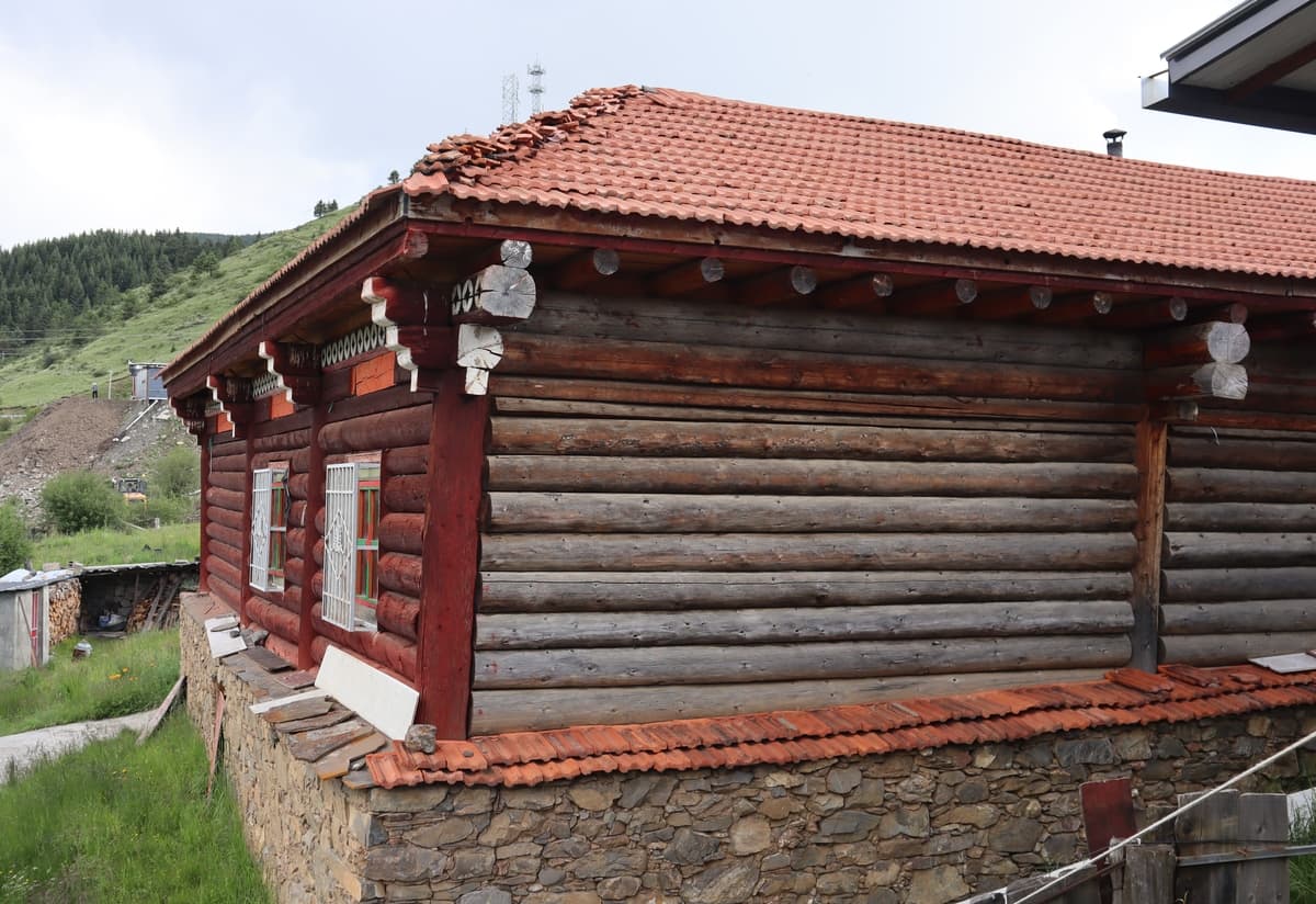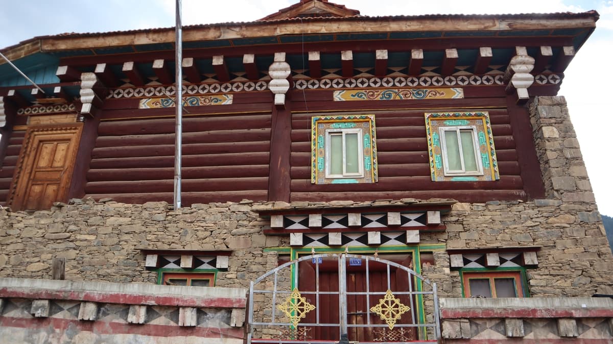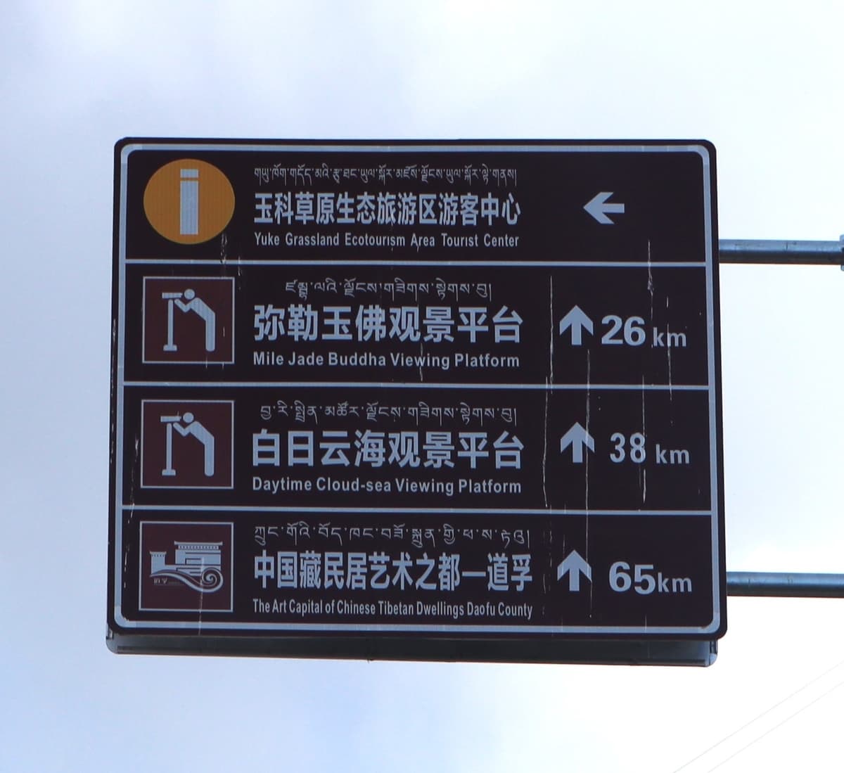 チベット住宅建築の都として知られ、丸太を井戸の形に組み合わせた大きなログハウスが郊外にたくさん見られる。土台は石を積み上げ、内部には豪華な装飾があり、経堂や居間には金漆が塗られるという。ほとんどが西向きに建てられた2階、3階建て住宅。チベット拉薩に向かい建てられているのだろうか。丸太を褐色に塗り、窓枠にはチベット紋様の美しい装飾がある。